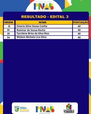 A Prefeitura Municipal de Duque Bacelar, através da Secretaria Municipal de Educação e do Departamento de Cultura, torna público para conhecimento o presente RESULTADO PRELIMINAR DE SELECIONADOS DO EDITAL DE CHAMAMENTO PÚBLICO N° 003/2026 - POLITICA NACIONAL ALDIR BLANC- PNAB – PREMIAÇÃO CULTURAL. LEI Nº 14.399, DE 8 DE JULHO DE 2022 que Institui a Política Nacional Aldir Blanc de Fomento à Cultura, regulamentada pelo Decreto Federal nº DECRETO Nº 11.740, DE 18 DE OUTUBRO DE 2023.